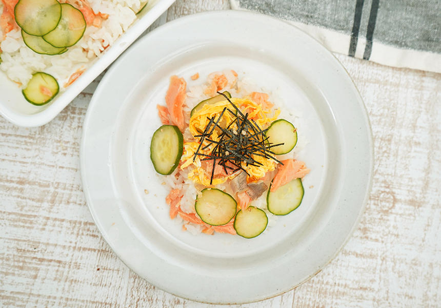 今回ご紹介するちらし寿司の中には栄養がたっぷり詰まった鮭を使っています。