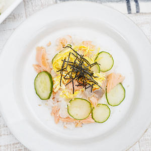サーモンは犬の嗜好性も高く、ドッグフードの原材料としても非常に人気があります。EPAなどのオメガ3脂肪酸を手軽に取り入れることができる食材なので、オススメですよ。今回は加熱調理したものを使用していますが、お刺身用のサーモンなら生のままちらし寿司に使っても大丈夫です。彩りとして塩漬けやしょうゆ漬けになっていないイクラを少しだけ加えてあげるのも良いですね。