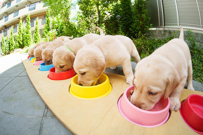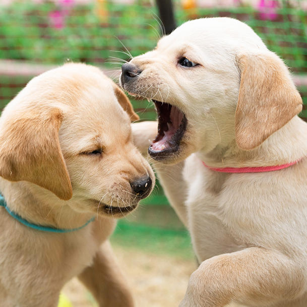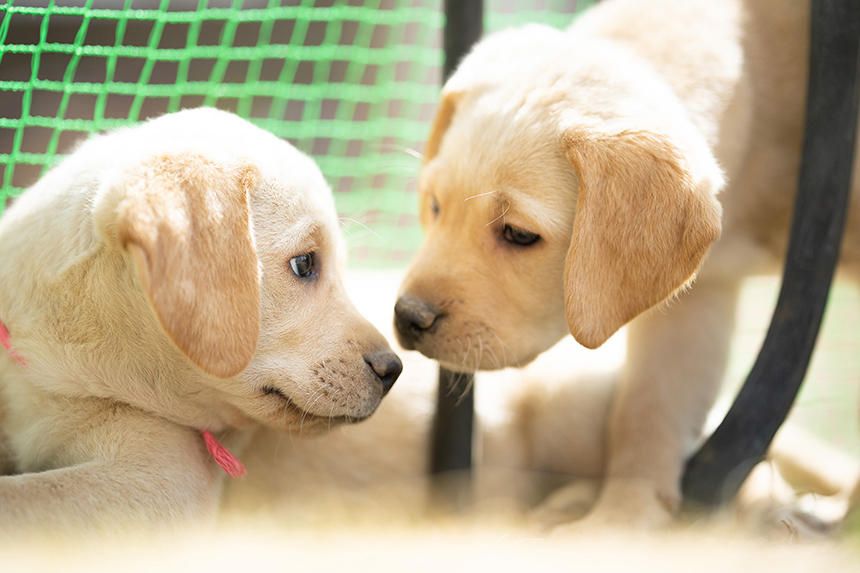 生後2週間ごろには目が開いて、兄弟姉妹と遊び始める。犬同士のコミュニケーションの基盤は、この時期に身につける。同時に、人間とも少しずつコミュニケーションを取るようになり、食事は母乳から離乳食を経てドッグフードへと段階的に切り替えていく。成犬への階段を上り始めるかわいい盛りの時期だ。