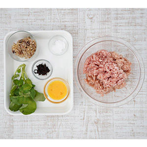 1.ボウルに鶏ひき肉・ひじき・卵・片栗粉・雑穀ごはんを入れてよく混ぜる。