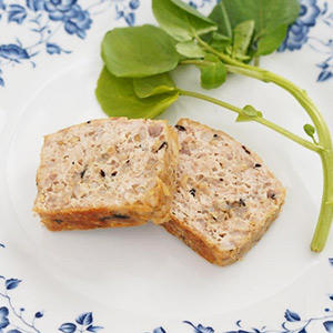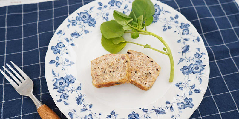 今回のレシピは、湯せんで作るミートローフ。焦げ付いたりすることがないので、失敗しにくいレシピです。タネをしっかりと混ぜ込んで、滑らかにするのがオススメです。また、ひじきは犬の手作り食で不足しやすい亜鉛を豊富に含む食材ですので、ぜひ使ってみて下さい。亜鉛は犬の皮膚や被毛の健康維持に必要不可欠の栄養素のひとつです。