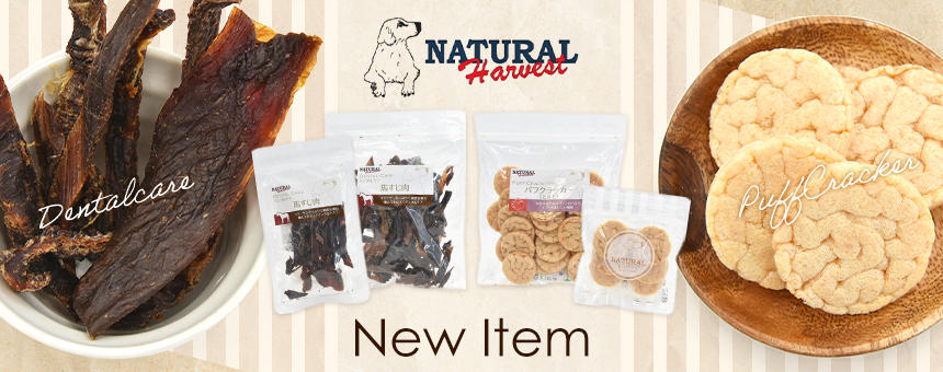 「ナチュラルハーベスト」より、新登場となったサプリメントとオヤツのご紹介。