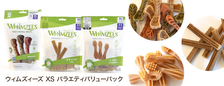 植物性の厳選素材を使用した、ユニークな形が特徴の「ウィムズィーズ」より、スティック、ハブラシ、ブラッシーズのXSサイズ3種類のハミガキトリ―ツが楽しめる、お得なバリューパックのご紹介。