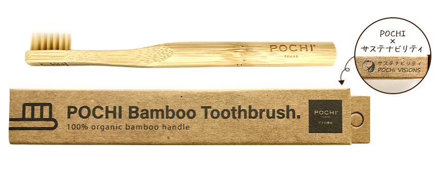 昨年POCHIのキャンペーンでプレゼントした「POCHI 竹歯ブラシ」がパッケージを新たに新発売となりました。