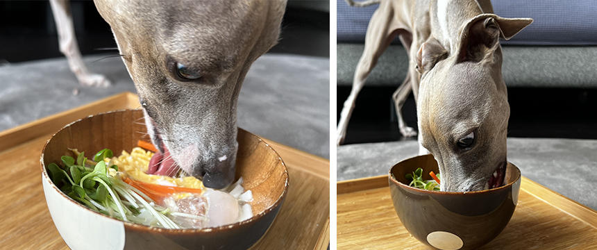カロリーが気になる犬にはうどん抜きで、スープと具だけにして楽しんでみてもオススメです。
