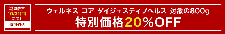 10月31日(月)までダイジェスティブヘルス全800gサイズ特別価格20%オフ