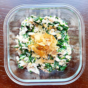 4.器に盛り付け、お好みで鰹節をトッピングして完成。