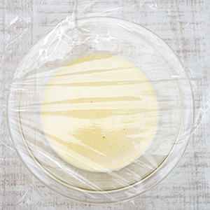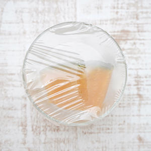 3.耐熱容器に2を入れて、ふんわりとラップをし、600Wのレンジで1分半加熱する。