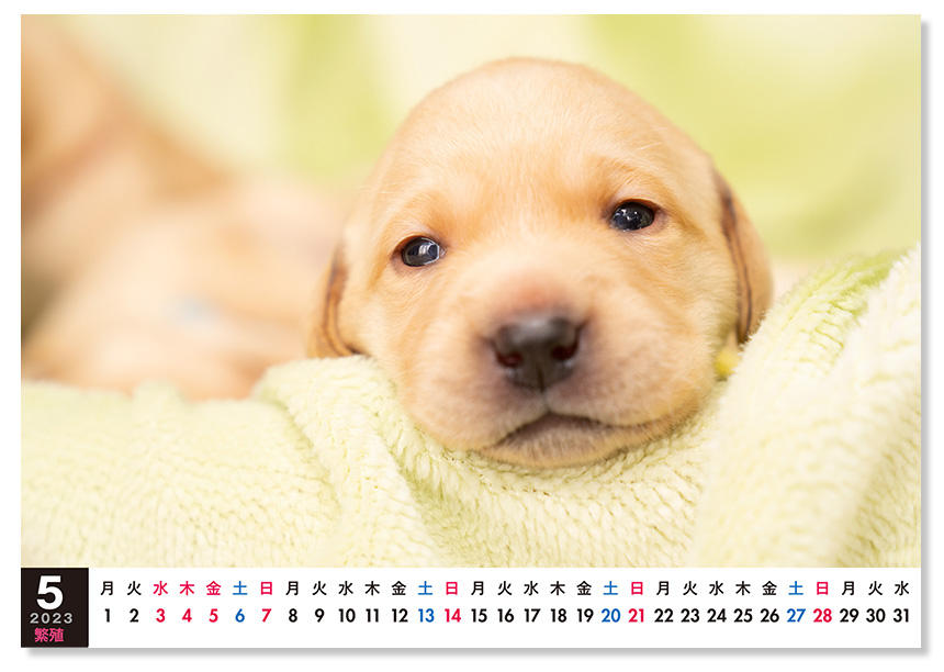 アイメイト(公益財団法人「アイメイト協会」出身の盲導犬)のチャリティーカレンダー『アイメイト・サポートカレンダー』を毎年作っている。現役のアイメイトだけでなく、アイメイト候補の子犬、ボランティア家庭で暮らすリタイア犬など、アイメイトの一生を網羅した内容になっている。撮影だけでなくネット通販の担当もしているので、年末にかけてはその発送作業に追われる。僕にとっては毎年11月と12月はカレンダーの季節だ。