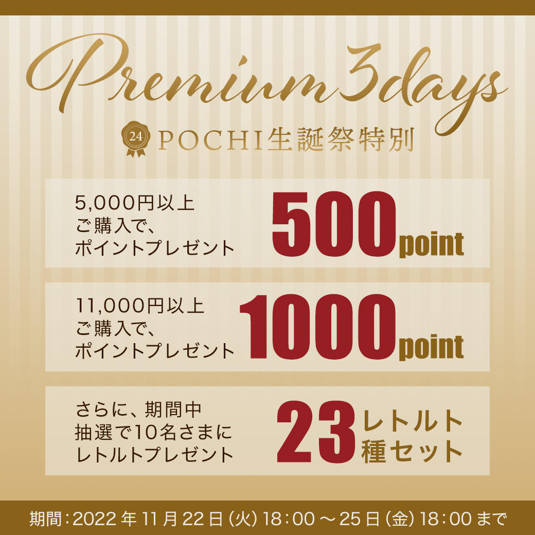 【終了】《POCHI誕生祭特別なPREMIUM 3DAYS》最大1000ポイントプレゼント&抽選で当たるレトルト23種類セット!