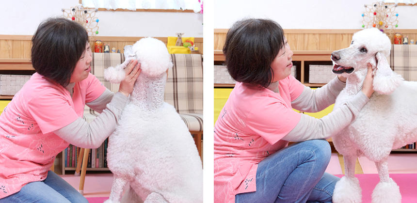 もし大きな犬が嫌がるようであったら、引っ張るのはやめて、首をやさしく撫でる程度にしてください。