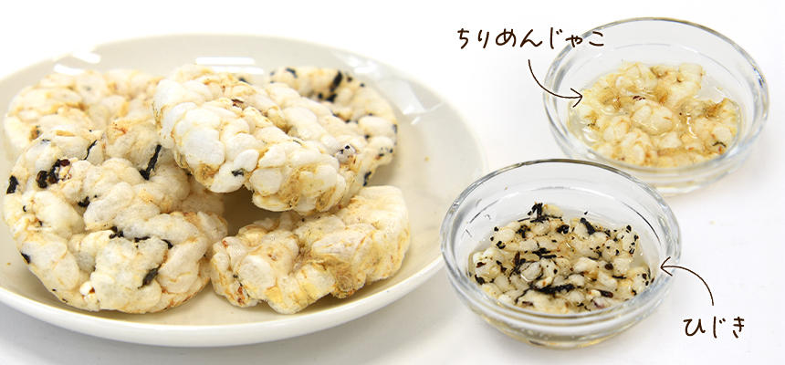 新登場の雑穀パフクラッカーは、愛媛県産の八穀米をポン菓子風に仕上げ、「ちりめんじゃこ」と「ひじき」をそれぞれブレンド。