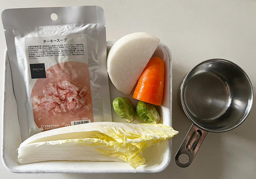 ターキースープはそのままフードにかけても美味しくいただけますが、温めて調理することで与え方の幅もぐんっと広がりますよ。