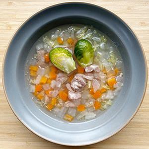 野菜と一緒にグツグツ煮込んだターキースープの匂いがとてもいい匂い。早くスープを飲みたくて舌を出しながらいただきます。細かく切った野菜は柔らかくて食べやすい様子。旬の芽キャベツもよく噛んで食べていました。いつものご飯にかけたり、お米を入れたり、アレンジも楽しめます!寒いこの時期に体が温まるスープは嬉しいね。
