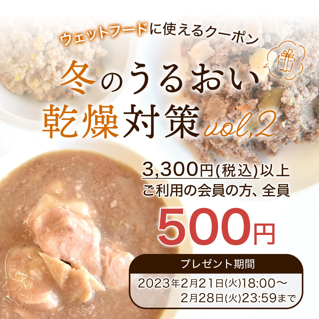【終了】《冬のうるおい体の乾燥対策》ウェットフードカテゴリで使える!500円クーポン
