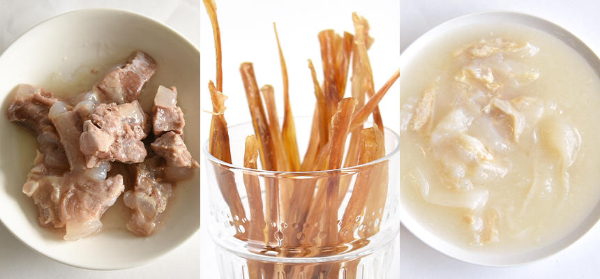 セットに入っているレトルト「鶏やげんレトルト」「豚バラ軟骨柔らか煮」は、少し温めるとコラーゲンが溶け出し、香りもたってくるのでよりいっそうおいしくいただけます。