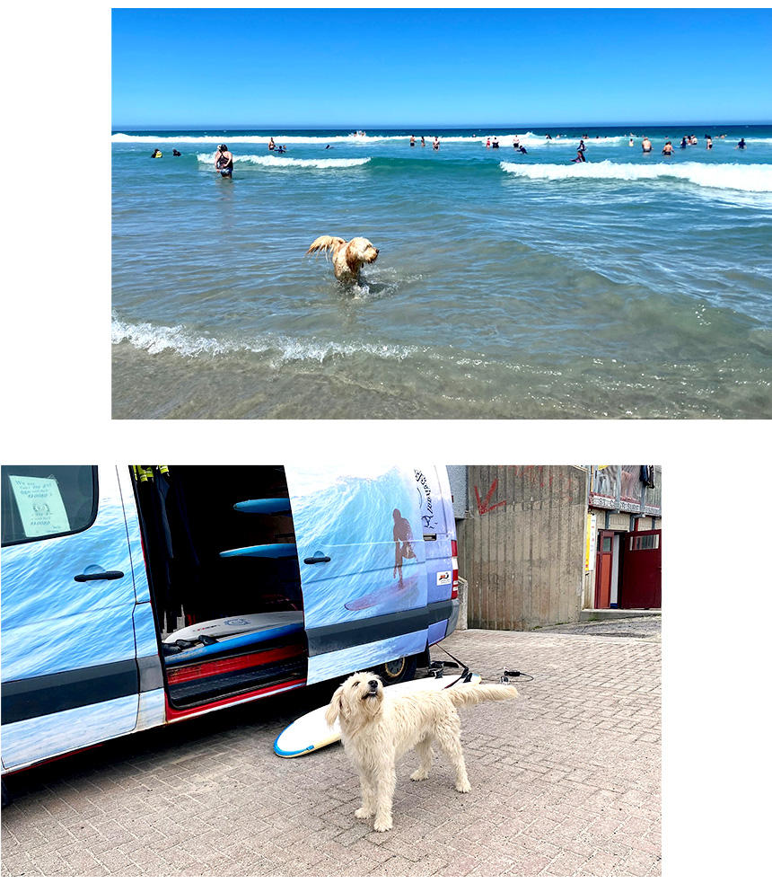 ダニーデンの海水温は低めで、波も高め。キーウィたちにとってそれほど海水浴はポピュラーではないようですが、筆者は多数の大きな犬と触れ合えるだけでも大満足でした。