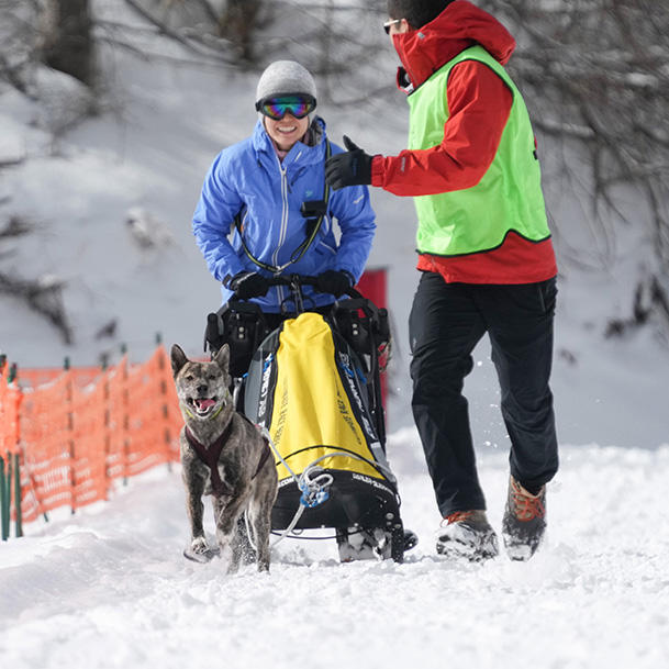 犬ぞりというと、シベリアン・ハスキーをはじめとするフサフサの大型犬が10頭くらい連なって大雪原をひた走るイメージを抱きがちだが、この大会は様相が違った。会場はスキー場併設のクロスカントリーコース。2日間にわたって100m、300m、1500mと短い距離のレースが何本も行われ、60mの体験会もあった。