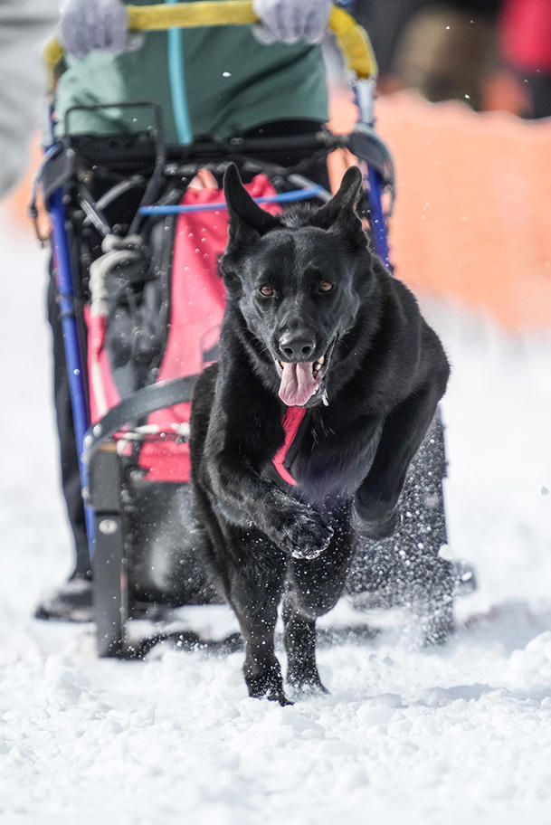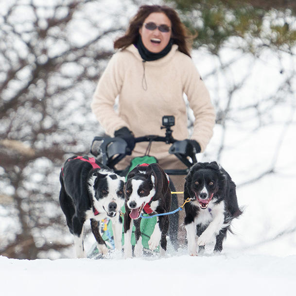 国内で犬ぞりをしている人は、中村さんのようにほかの競技も楽しんでいる場合が多い。中村さんは今回、ディスクを得意とするキャンディと、一緒に暮らすダンスドッグの「カリ」(ボーダーコリー、3歳メス)と300mの2頭引きレースなどに参加。頭数制限のない1500mオープンレースには、仲間の犬を加えて3頭で臨んだ。
