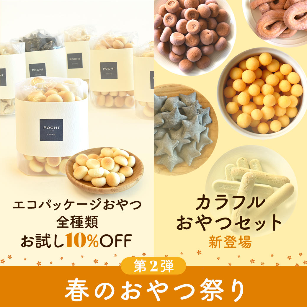 今回春のおやつ祭り特別お試し価格として、エコパッケージおやつ全7種を3月31日(金)までの期間限定10%オフでご用意しました。