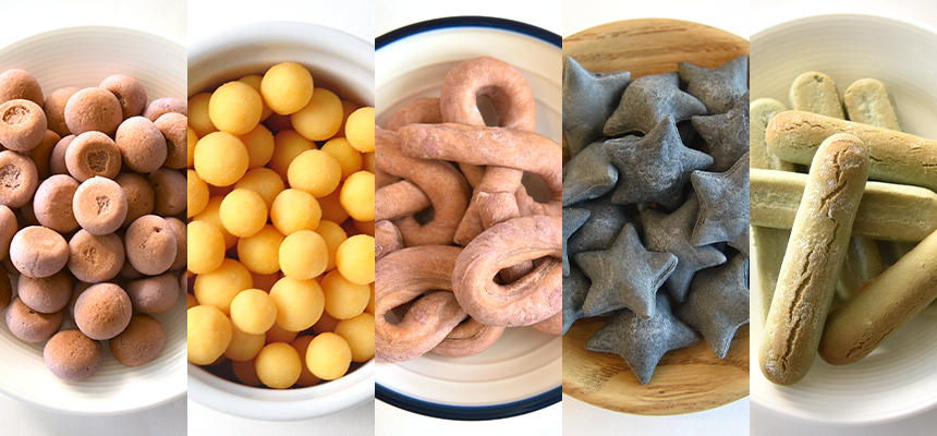 ポチ人気のおやつの中から、カラフルな春色のおやつをセレクト。