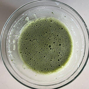 3.1のボウル2つ目にほうれん草パウダーを入れ、よく混ぜる。