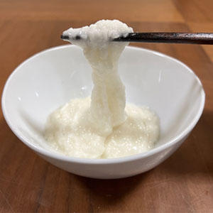 山芋・長芋の特長のひとつで独特の食感やとろみを作っているねばねば成分は、マンナン(食物繊維の一種)とタンパク質が結合した糖タンパク質と呼ばれる成分です。