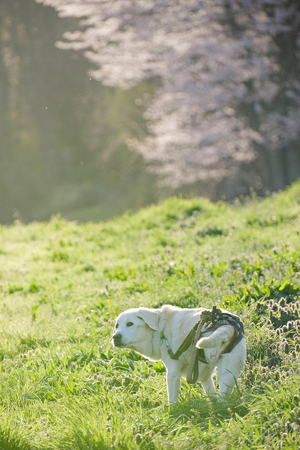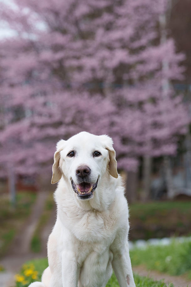 昨秋にはすっかり自力で元気に駆け回れるようになったマメスケは、浅間山麓の厳しい冬を乗り越え、今年も無事桜の季節を迎えることができた。昨年の桜は、骨肉腫で余命半年ほどと診断された直後に仕事場があった東京で見たVol.15<「街か山か」- 終の住処の選択」>。その頃は急坂が多く冬の寒さが厳しい山の自宅にはもう帰れないかな、と思っていただけに感無量だ。