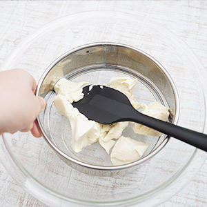 2.耐熱容器に絹豆腐、片栗粉、はちみつを入れて泡立て器でよく混ぜ、ふんわりラップをして600Wのレンジで2分加熱する。1度取り出して全体をヘラで混ぜ、再度ふんわりラップをして600Wのレンジで1分加熱する。