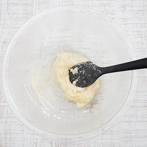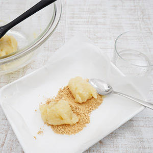 3.取り出して練り、水で濡らしたスプーンですくい、丸く成形する。