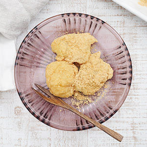 飼い主さん用に作る場合は、きなこに砂糖を加えてください。ひとつまみの塩をプラスすると、よりおいしくなります。