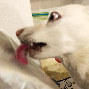 うちの子の場合、フードへのトッピングなので、正直言って半分の量でちょうど良いように思います。