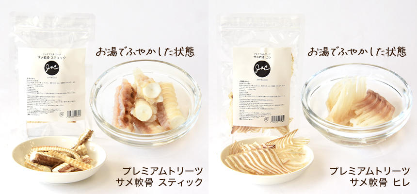 どちらも、お湯でふやかし半日ほど置くと半生のような柔らかい軟骨になります。