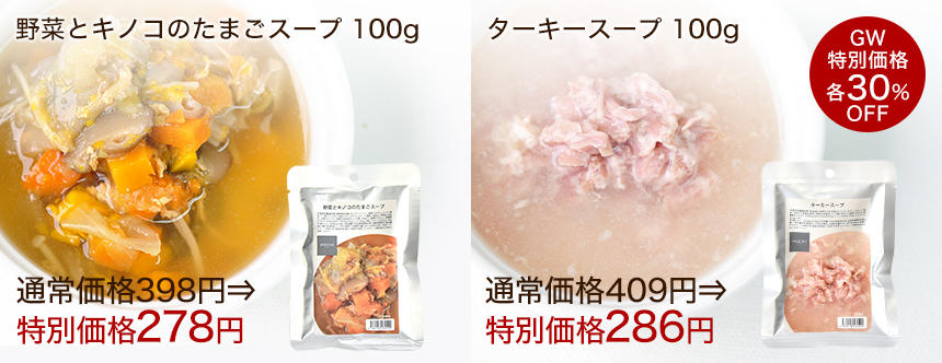 ※「野菜とキノコのたまごスープ」と「ターキースープ」は数量限定でのセールとなりますので、規定数に達しだいセール価格は終了となります。