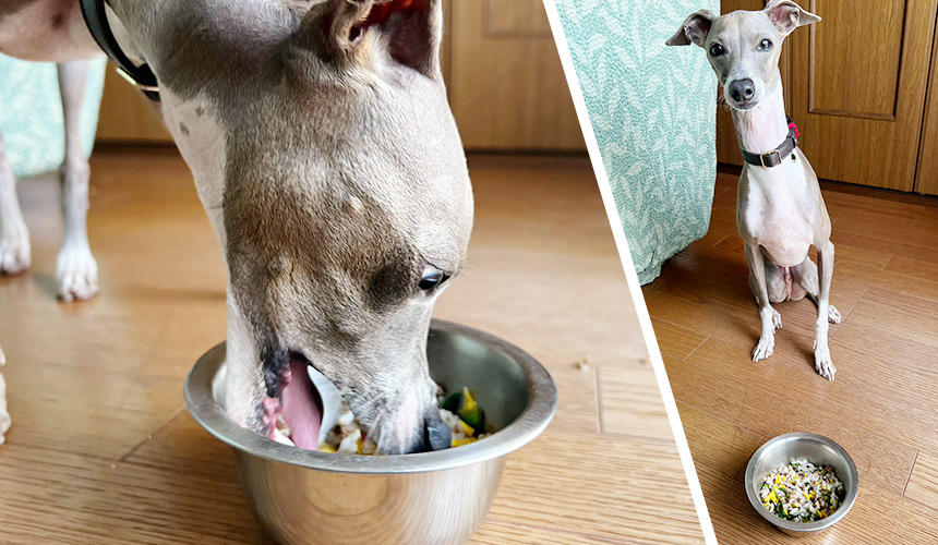 時短!春の美味しい手作り犬ごはん「さくら肉のそぼろと菜の花のごはん」