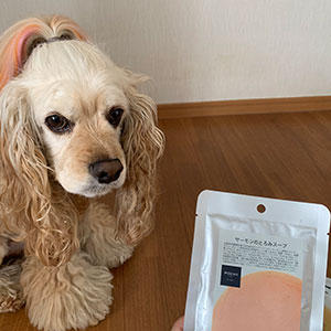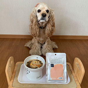 サーモンのとろみスープは、そのままフードにかけてあげるだけでも喜んで、いつまでもお皿をペロペロでした。