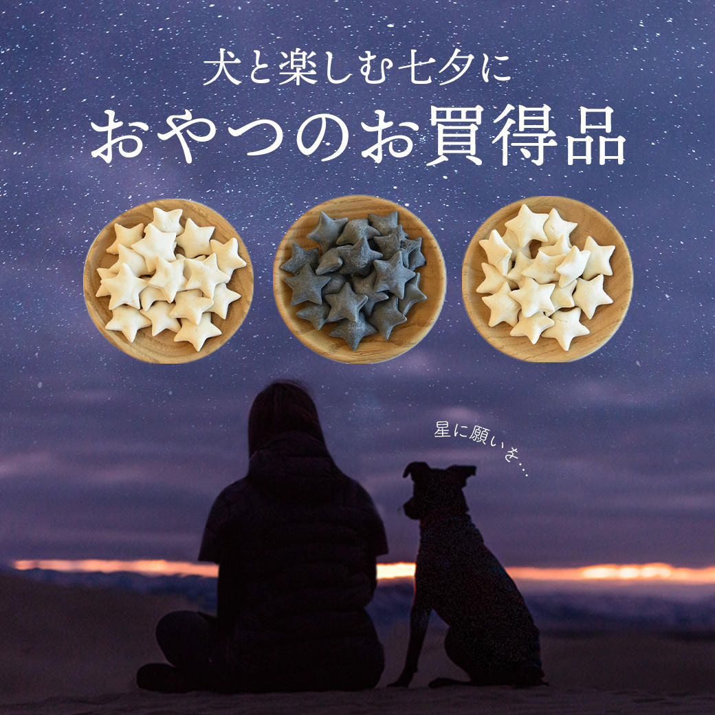 七夕の短冊に、「これからもずっと長生きしてね」と願いを込めたり、犬たちと夜空を眺めながら過ごす時間のお供に、おいしいものがあればずっと楽しく過ごせます。