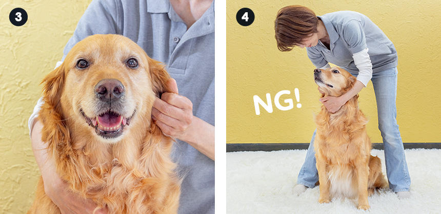 うちの子の反応を見たくて、上から犬に覆いかぶさるようにして飼い主さんが覗き込みがちですが、それをすると犬が緊張してしまうのでやめましょう。