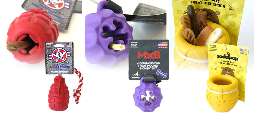 天然ゴムの強度を保つため、混ぜ物を一切しないで作られたトリートディスペンサー兼、噛むおもちゃ。