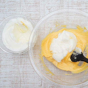 3.1の3回に分けて加えて、優しく混ぜる(メレンゲが崩れないように)