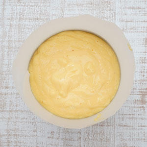 5.型に3を流し込み、3cmほどの高さから落として空気を抜く。200度に予熱したオーブンで15分ほど焼いた後、130度に温度を下げて30分焼く。