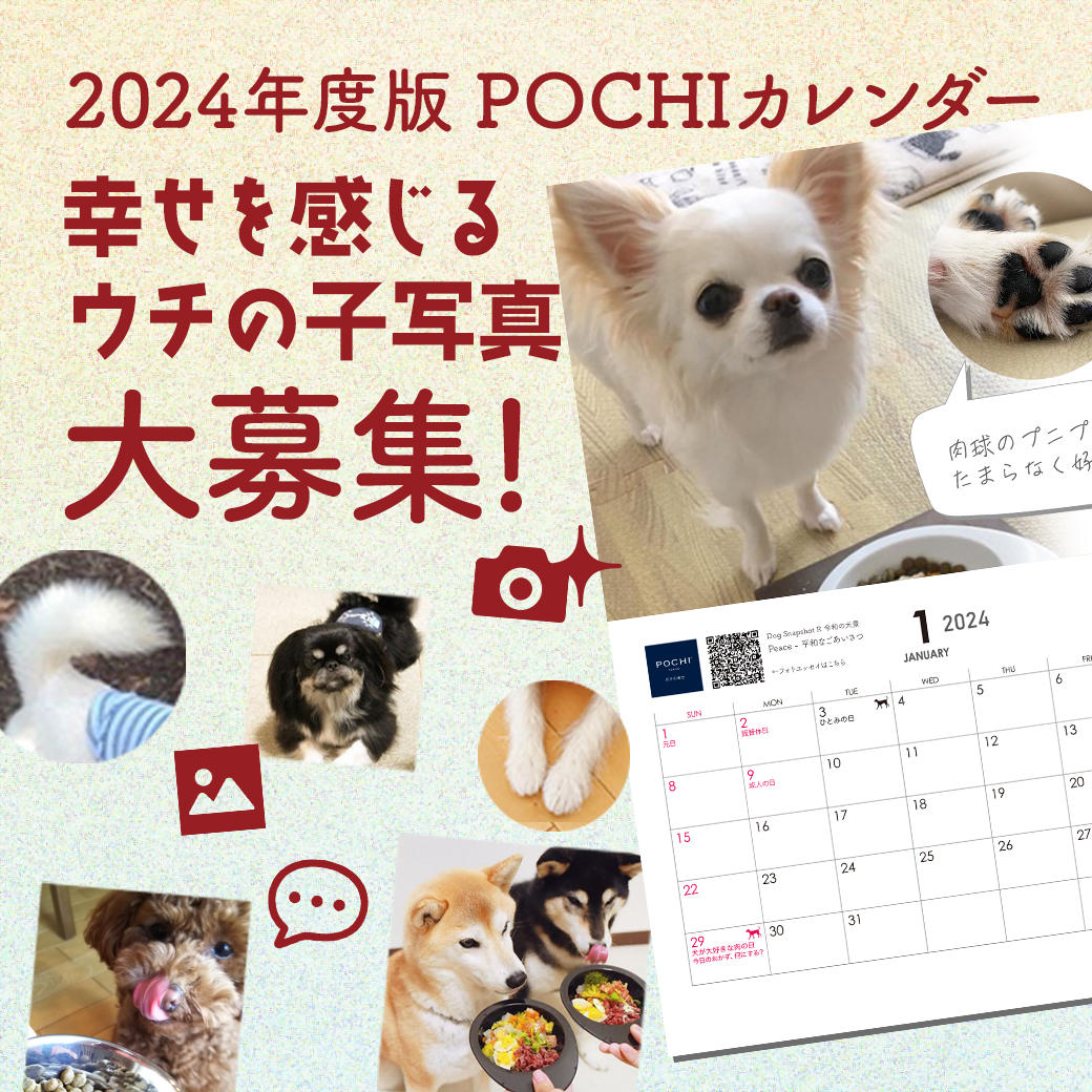 記念品としてプレゼントする2024年度版POCHIオリジナルカレンダーに掲載する、犬の写真を大募集します!