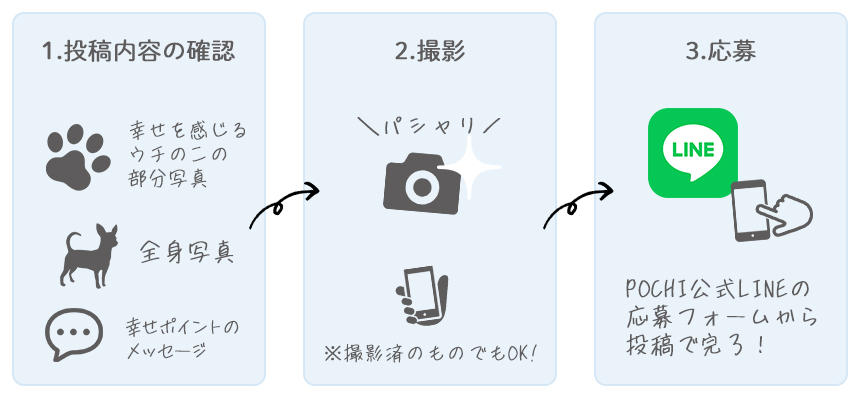 *4 ご応募いただいた写真は、POCHIサイトにてご紹介させていただきますので、人物の顔がわかるような写真は無効とさせていただきます。