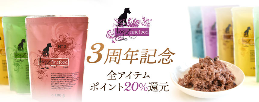 今回発売3周年を記念して、ドッグファインフード全アイテムのポイントを20%還元!