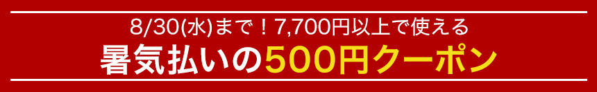8/30(水)まで【終了】7,700円以上で使える暑気払いのお買い物500円クーポン
