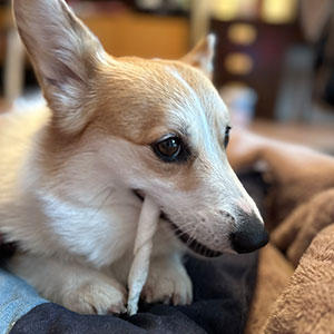 今回は、モニターメンバーみんなにPOCHIが発売している3種類のタイプの違うガム(POCHI デンタルプロバイオガム、POCHI プレミアムローハイドガム スキニーツイスト、POCHI ナチュラルローハイドガム)を試してもらい、お気に入りを選んでもらいました。コーギーのさくらちゃんはどれが一番お気に入りかな?