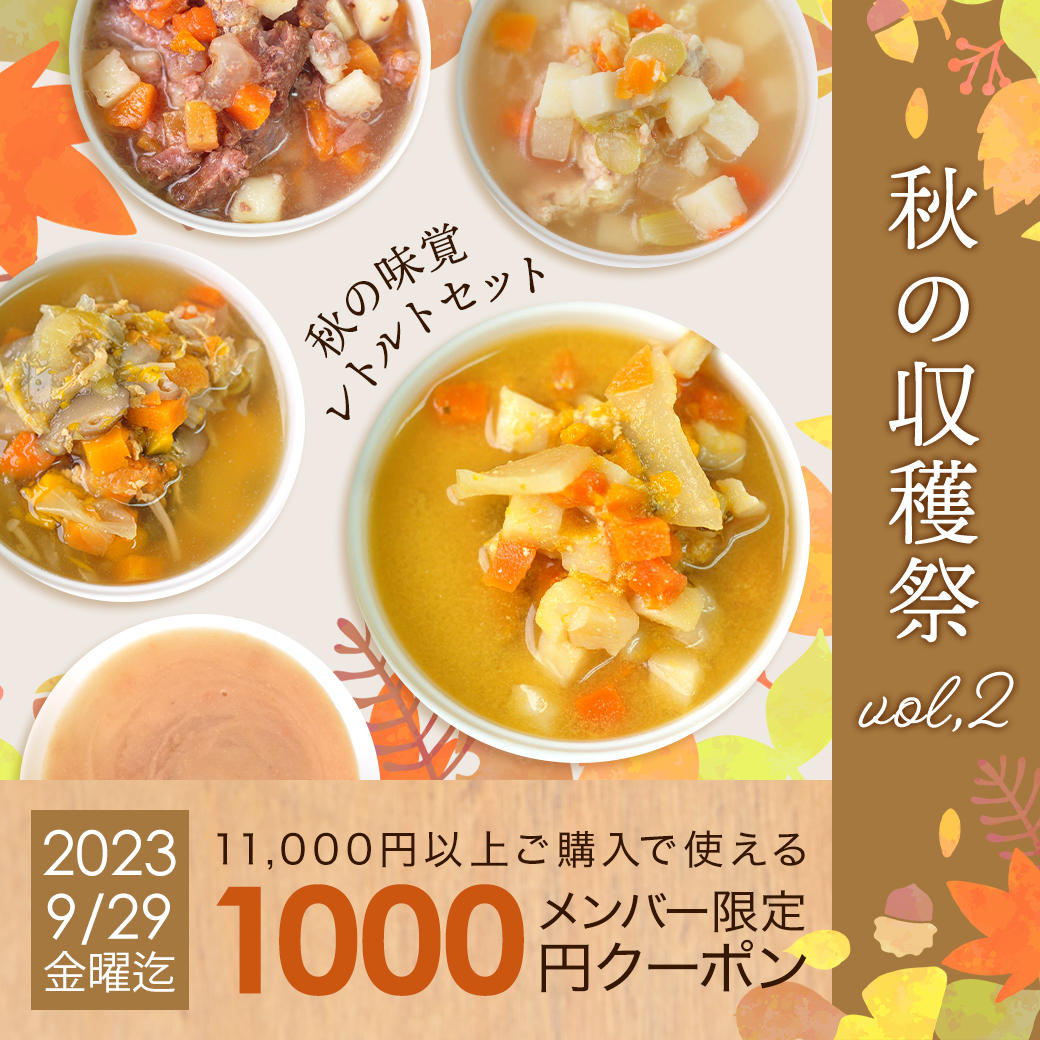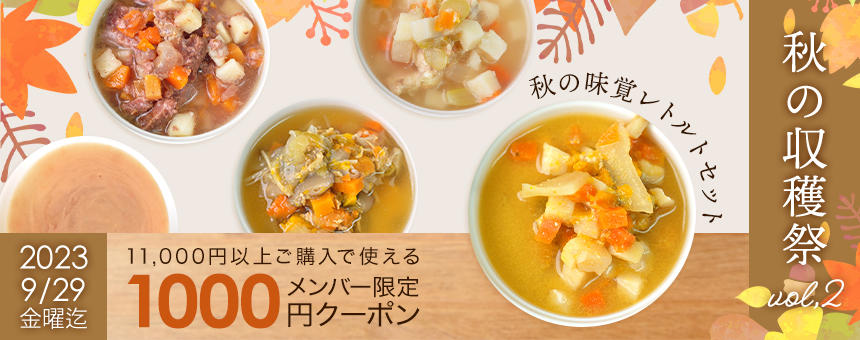 【終了】《秋の収穫祭 vol,2》おいしい秋を楽しむ1,000円クーポン&秋の味覚レトルトセット
