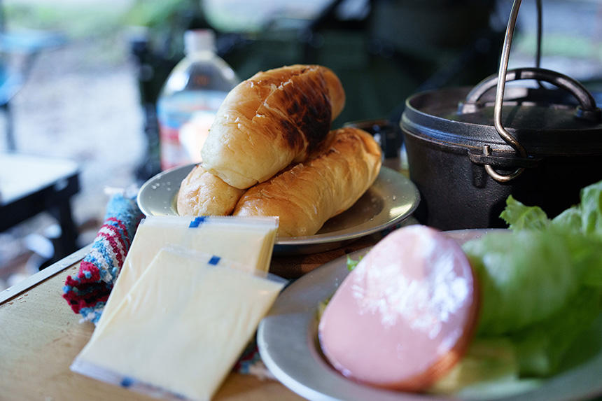 翌朝、早起きデデの「テントから出して攻撃」に眠い目をこすり、まずは排泄散歩。テントサイトに戻って、コンロでパンを焼き、ハムとチーズとレタスを挟んで食べた。デデはごはんを食べたら、手をなめたりしながらトロンとまどろみ始める。休日の二度寝ほど気持ちの良いものはないもんね。
