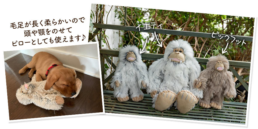 噛んだり引っ張ったり、オモチャとして遊ぶのはもちろん、毛足が長く柔らかいので、頭や顎をのせてミニピローとしても使えます。