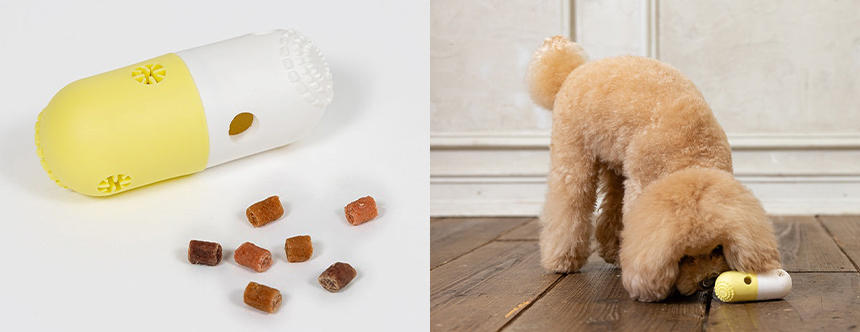 カプセルの中にトリーツを入れて宝探し!カプセル型の知育トイが2サイズで新登場。